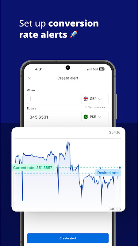 Imposta avvisi personalizzati per essere informato quando i tassi di cambio raggiungono i tuoi valori desiderati. Questa funzione ti permette di cogliere le migliori opportunità di cambio e di ottimizzare i tuoi trasferimenti di denaro.