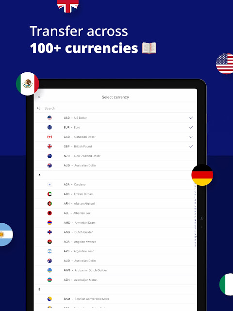 Inviare denaro all’estero è facile e sicuro con Xe. Puoi trasferire fondi a familiari, amici o partner commerciali in modo rapido e con commissioni competitive. L’applicazione utilizza protocolli di sicurezza avanzati per proteggere le tue transazioni.